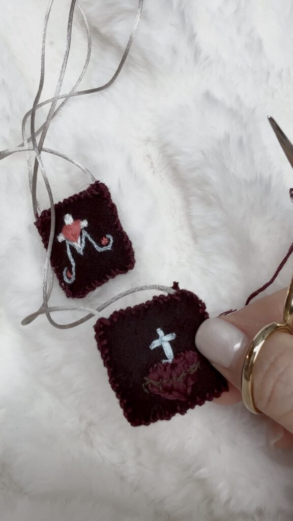 DIY scapular with sacred heart of Jesus and Marian cross